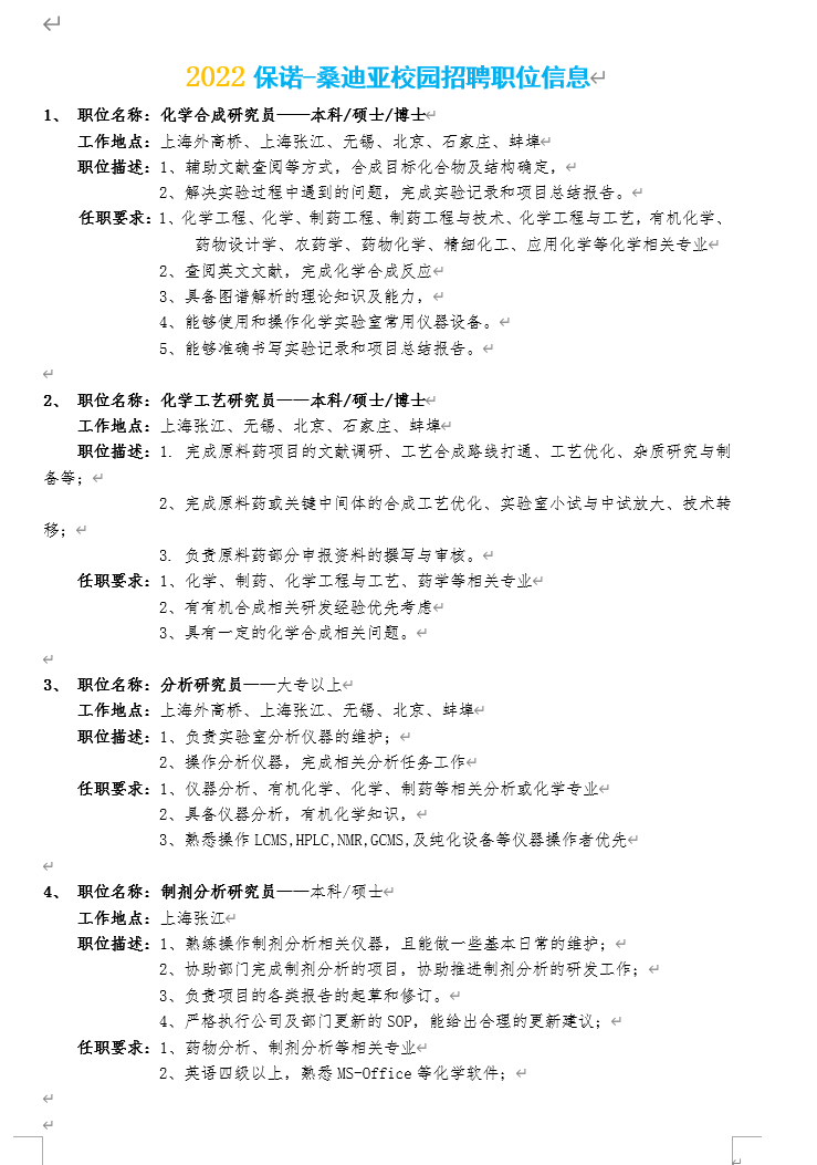 生工学院【2022】28号 保诺-桑迪亚2022年校园招聘