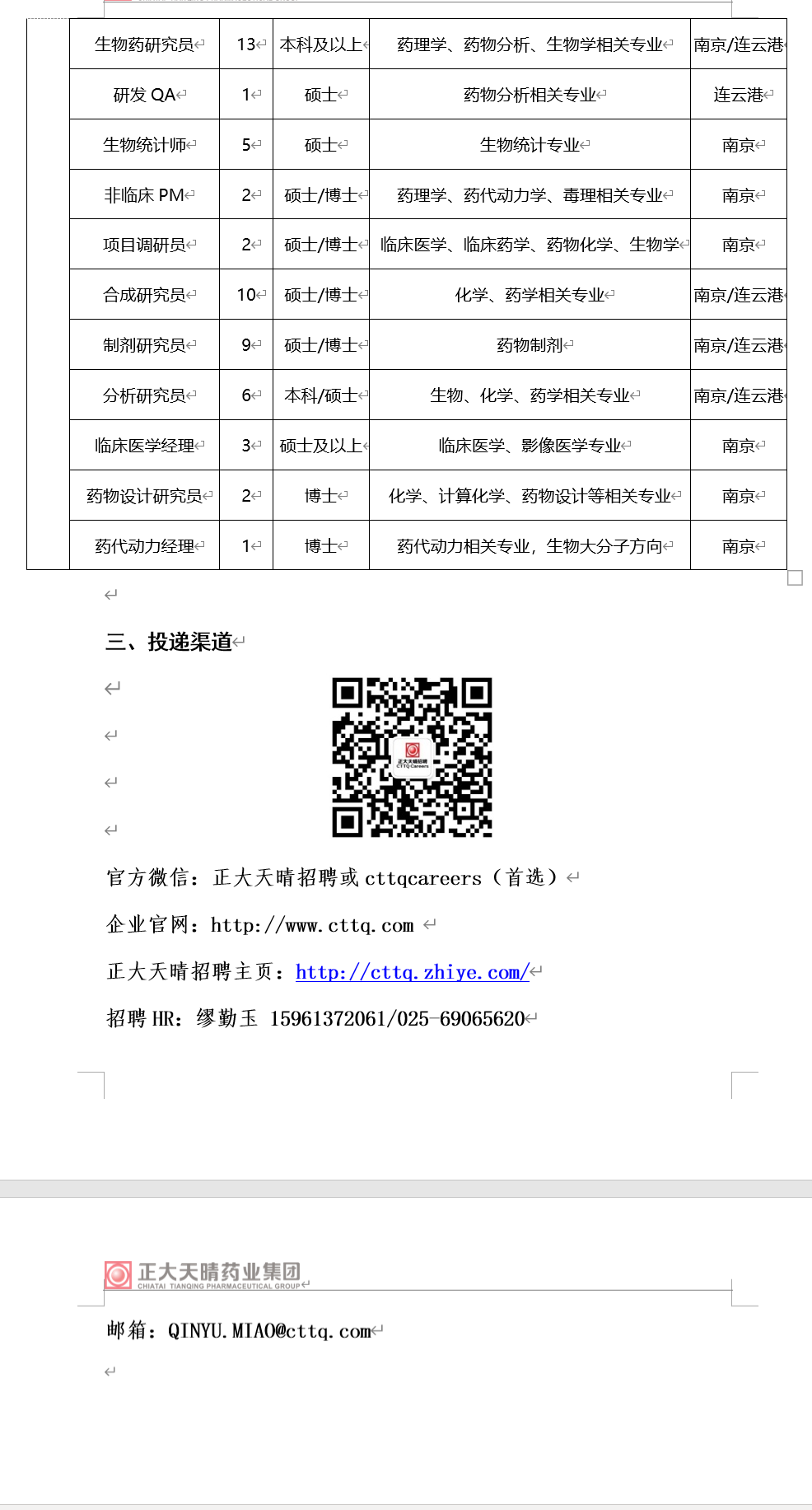生工学院【2022】37号 正大天晴药业集团股份有限公司校园招聘