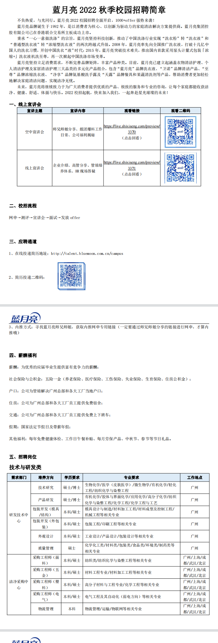 生工学院【2022】76号 蓝月亮 2022 秋季校园招聘