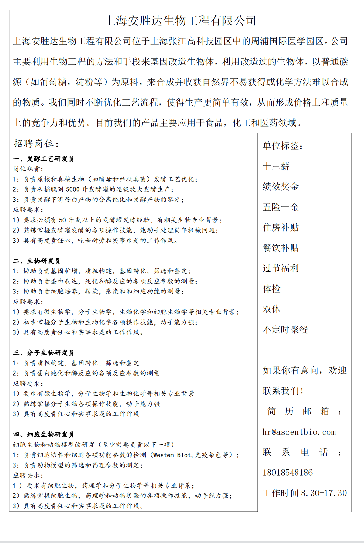 下一篇:生工学院【2022】118号 苏州晨曦生物招聘简章