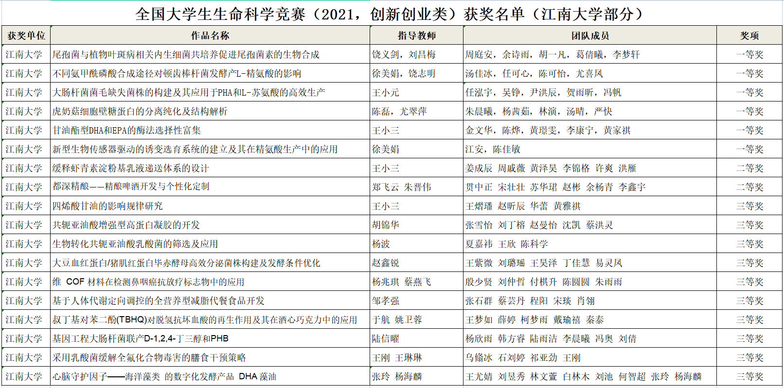 江南学子在全国大学生生命科学竞赛(2021,创新创业类)再获佳绩