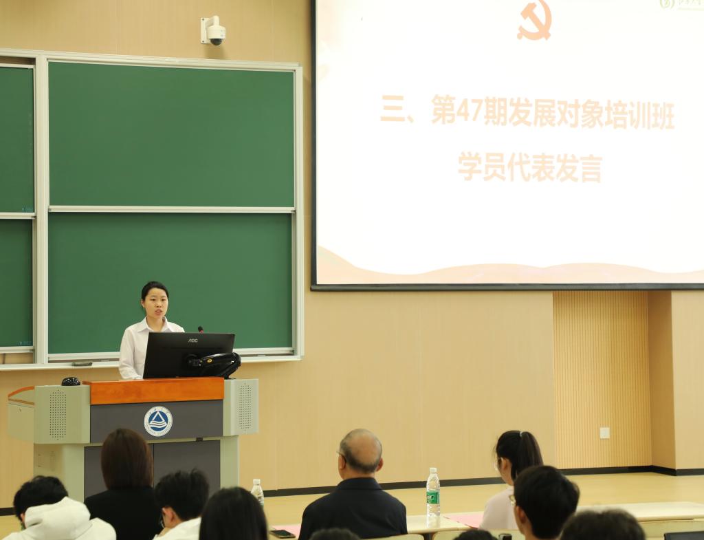 beat365在线唯一官网2022级本科生刘垚代表第47期学生党员发展对象培训班新学员发言,她从遵守纪律、勇于担当、握技强能角度承诺将做到“坚定不移听党话、跟党走,行为有指南,行动有标准,怀抱梦想同时脚踏实地,争做先锋模范表率。”